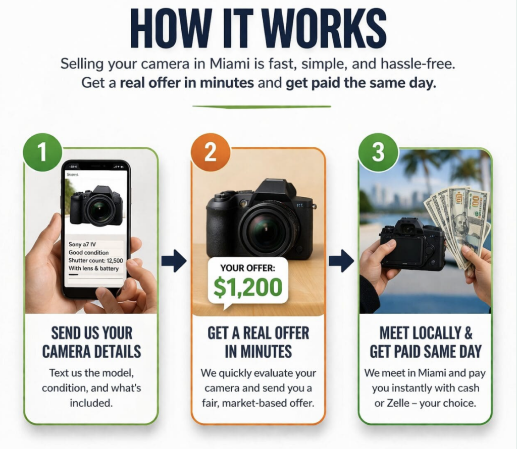 The good news is: if you’re in Miami, you have a strong local market for camera gear. From photographers and videographers to content creators, there’s consistent demand for quality used cameras.
